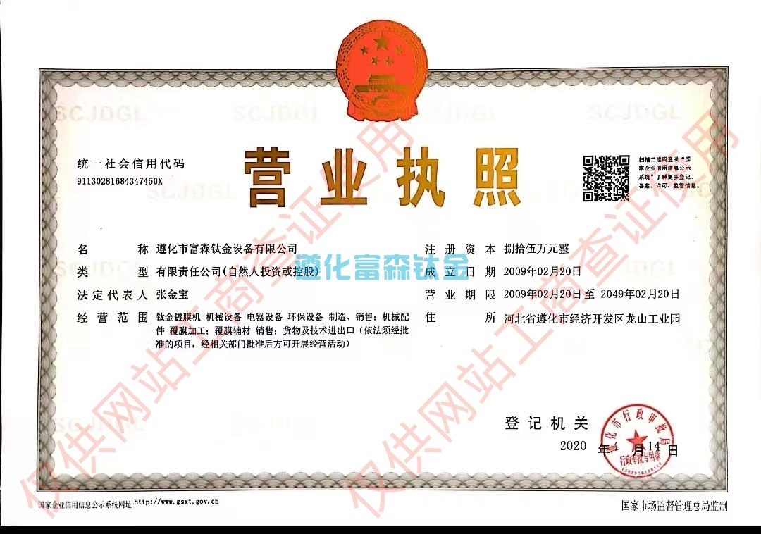 乐竞网页版(中国)官方网站有限公司位于河北省遵化市,是一家专业从事真空镀膜设备制造、镀膜工艺研发推广的企业,开发出多款应用于硬质涂层、装饰涂层以及特殊功能涂层的全自动控制PVD离子镀膜设备。富森钛金本着“随时准备满足您的特殊要求!”的经营理念,致力于为行业客户提供全套的PVD离子镀膜设备解决方案,提供“交钥匙”工程,包括:PVD离子镀设备、前后处理设备、质量检测仪器、生产耗材和生产工艺在内的全方位技术服务。本公司真诚希望和国内外客户携手合作,共创未来。Zunhua Fusen Titanium Equipment Co., Ltd. is located in Zunhua City, Hebei Province. It is a high-tech enterprise specializing in t...